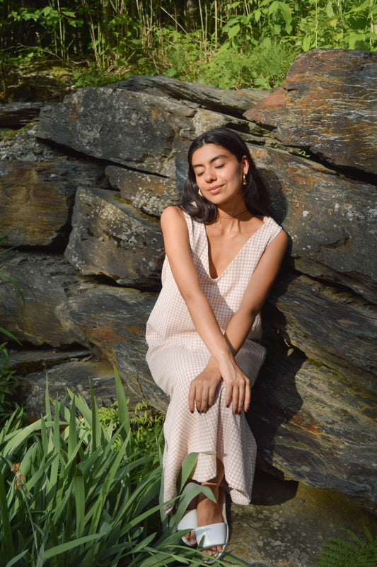 Cadry - Robe réversible à carreaux roses et blancs