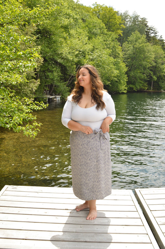 Épanouissement - Jupe longue bleue fleurie avec fente