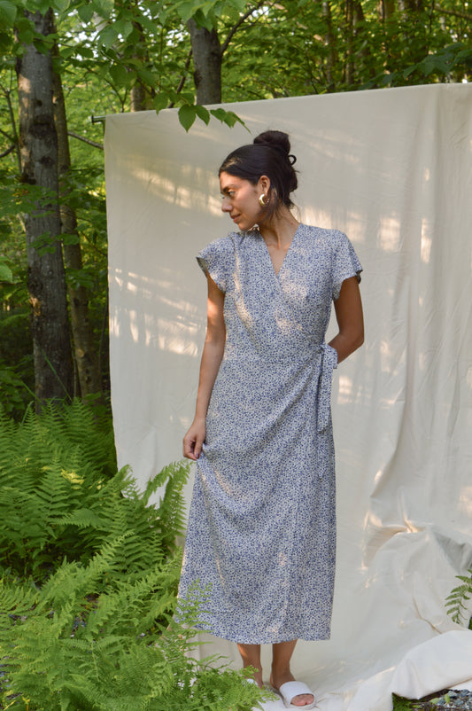 Floréa - Robe portefeuille à fleurs bleu marine