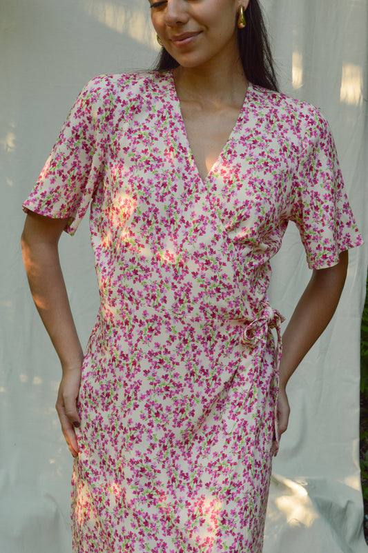 Floréa - Robe portefeuille à fleurs fuchsia