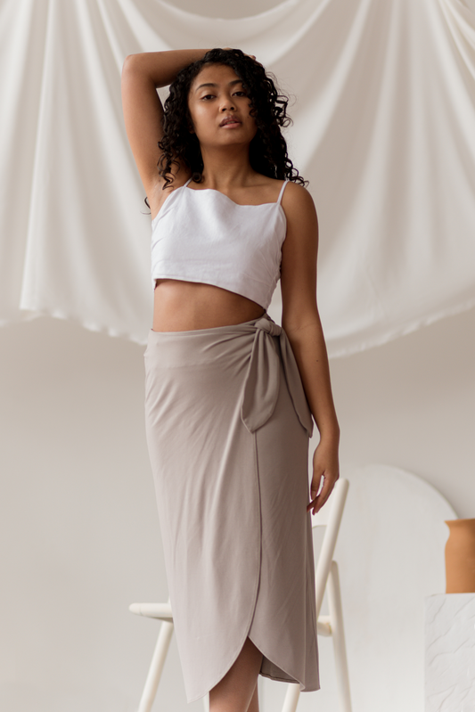 Équilibre - Jupe portefeuille nouée couleur sable