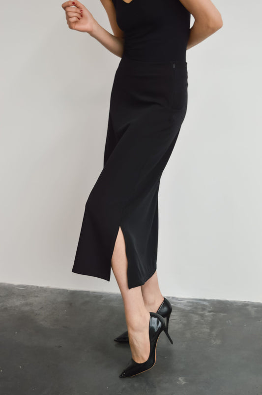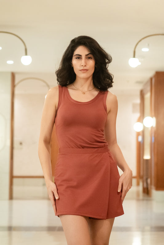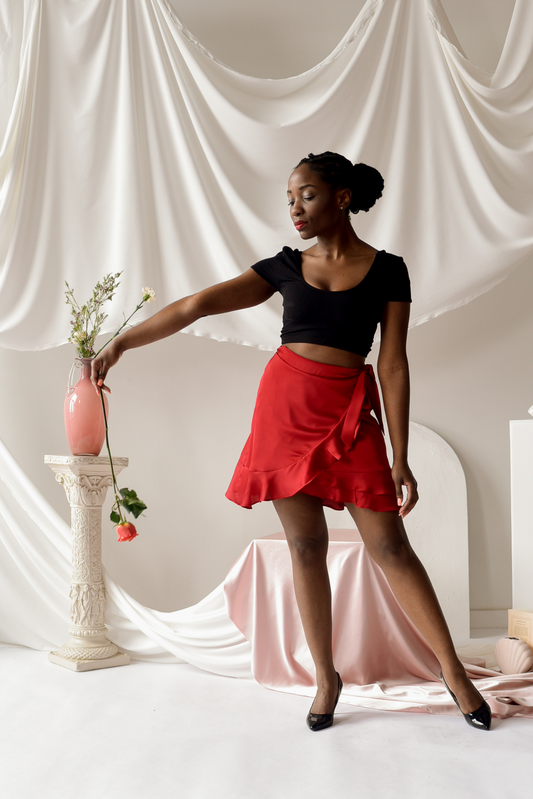 Sensualité - Jupe portefeuille en satin rouge avec volants